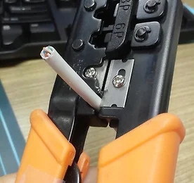 랜선만드는 방법 1. 랜선을 필요한 만큼 자른다. 2. RJ45커넥터가 들어갈만큼 피복을 벗겨낸다. (랜툴이용) 3. 각각의선을 순서대로 정리해준다. 흰주, 주, 흰녹, 파, 흰파, 녹, 흰갈, 갈 4. 선을 일렬로 정렬한 후 랜툴이용해서 일자로 자른다. (각각의 선들이 평행이 되게, 니퍼를 이용해도 된다.) 5. 랜툴 이용해서 꽉 눌러준다. 6. 완성 ( 선길이 조절 실패 ㅠㅠ) 더보기